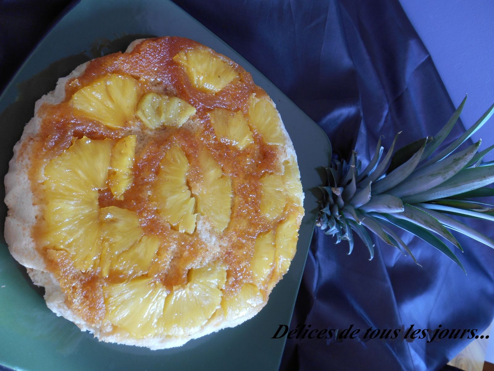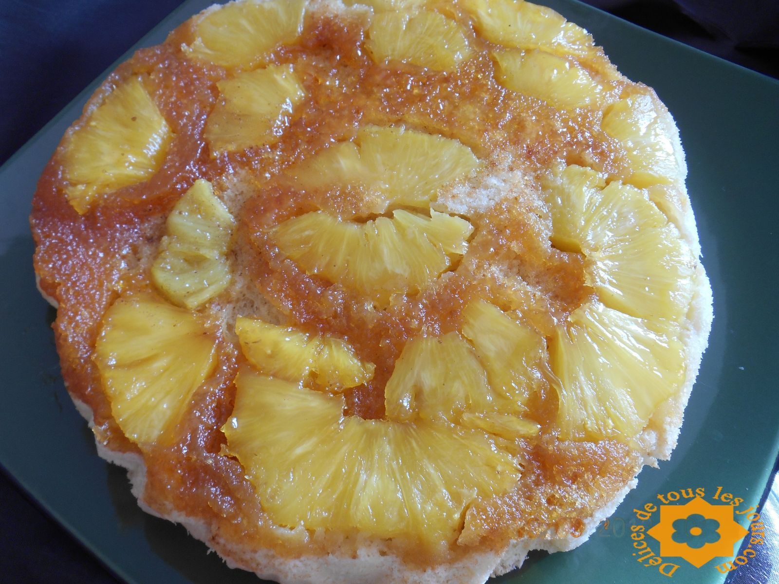 Une génoise arrosée de sirop façon baba, des rondelles d'ananas sur un lit de caramel tout ce qu'il faut pour fondre de gourmandise...