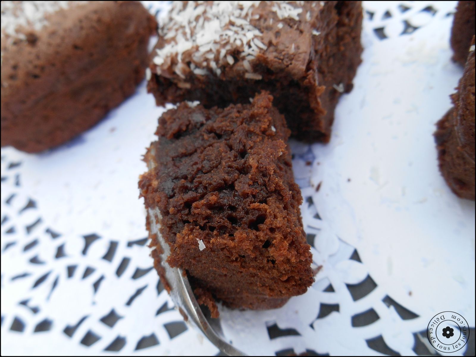 Si l'envie d'un goûter rapide et chocolaté vous prend, je vous invite à déguster ces petits fondants au mariage parfait entre le chocolat et la noix de coco...